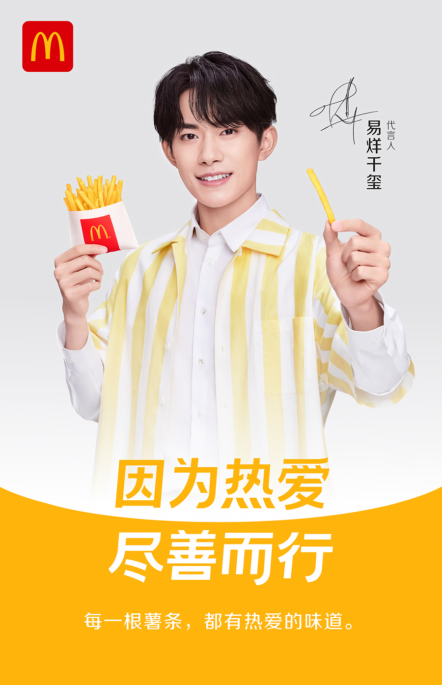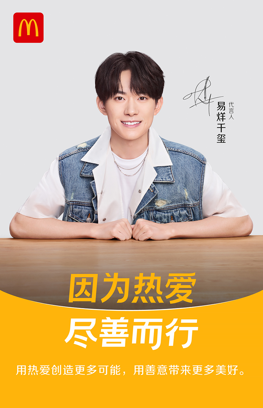 5月5日,麦当劳宣布易烊千玺成为品牌代言人,并发布全新品牌理念——“因为热爱,尽善而行”。