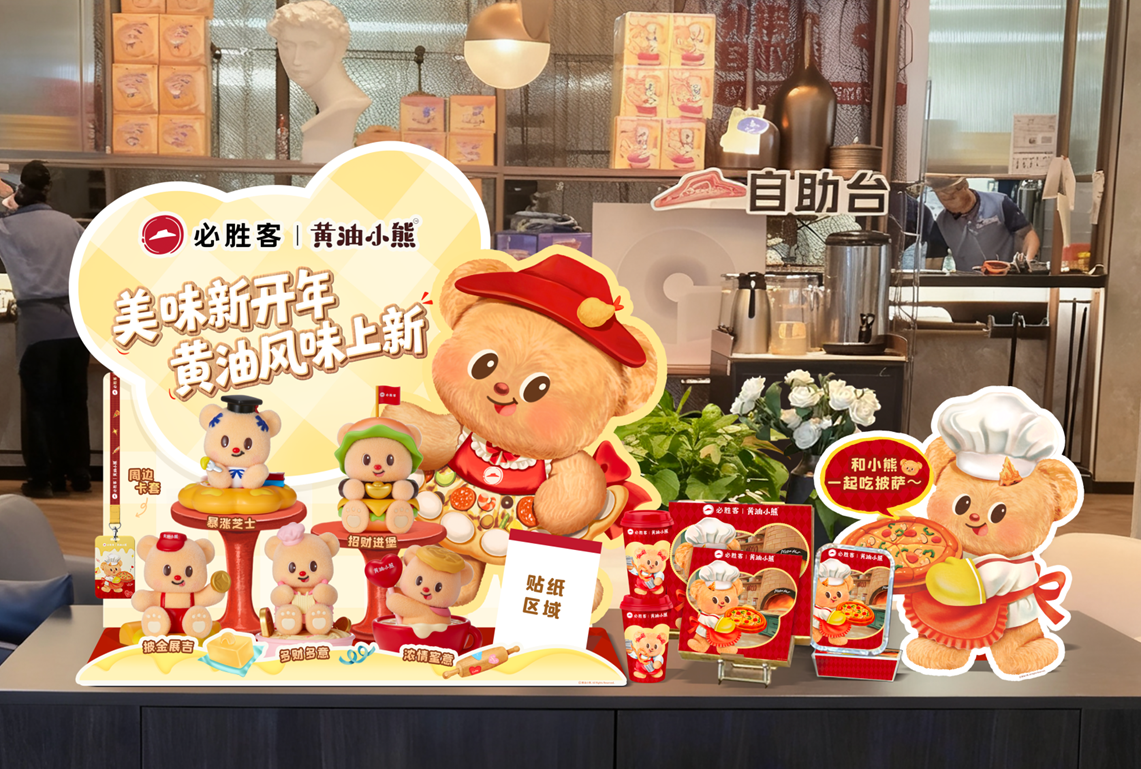 必胜客推出的五款黄油小熊植绒摆件,每一款都巧妙地对应一道菜肴,并被赋予了如“招财进堡”等充满趣味和美好寓意的名称。这些外表可爱的摆件,为年轻人在忙碌日子里“给自己的一点小小祈愿”提供了具象化的出口。此外,卡套、植绒玩具等实用型周边,则让“带着必胜客的可爱去生活”成为一种可能,部分线下门店还免费发送贴纸和年历。